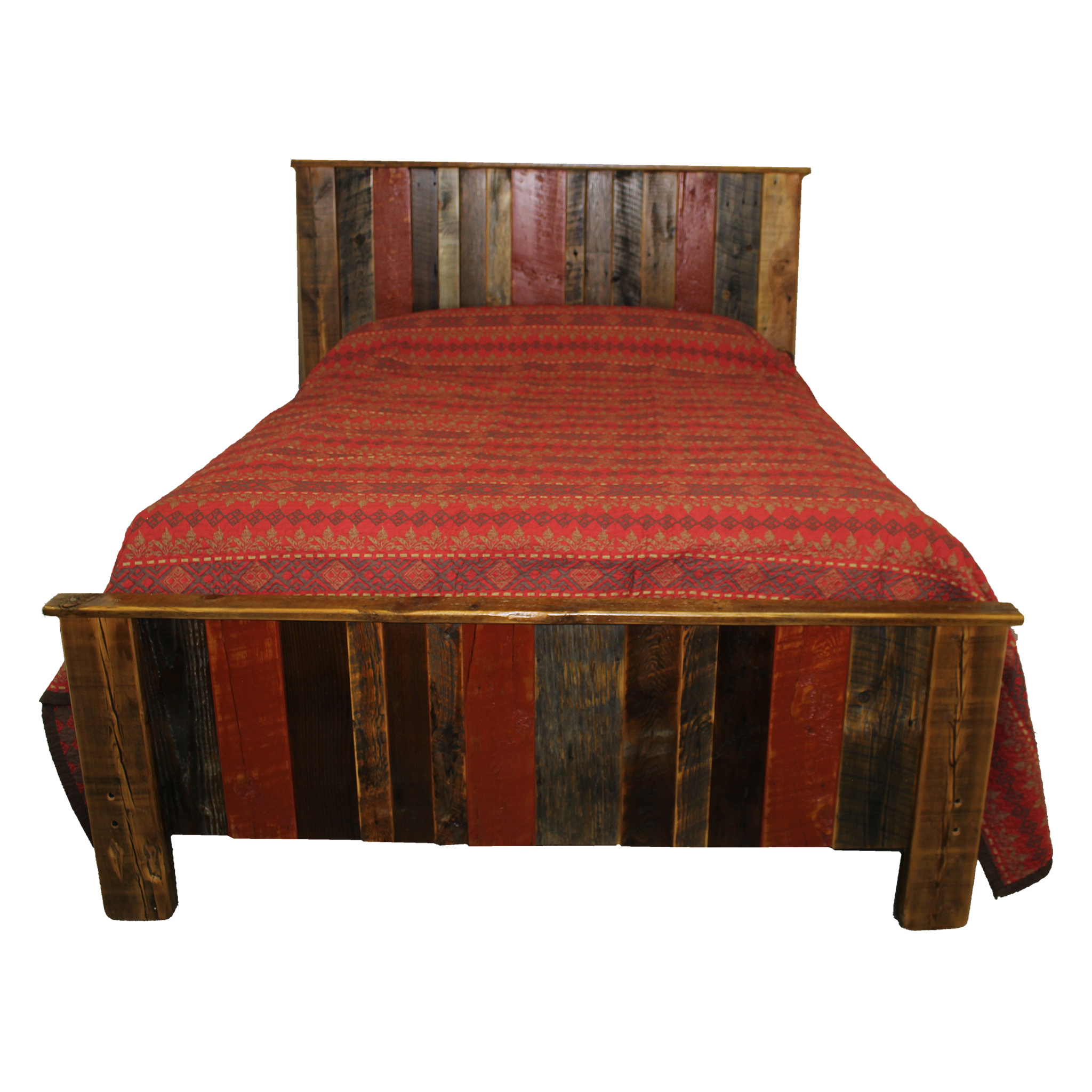 Rustic Americana enthusiasts, look no further than the Arizona-Rustic Barnwood Plank Bed. Designed and manufactured by a dedicated team of expert furniture builders in Bozeman, Montana, this bed features vertical plank barnwood in varying shades for a truly dynamic aesthetic. Crafted entirely out of reclaimed barnwood salvaged from America’s farms and ranches, the varying shades of the wood planks are due in large part to the different environments from where the wood originated. In fact, we do our best to preserve the natural beauty of our source wood in every Arizona-Rustic Barnwood Plank Bed that we construct. The natural shading and patterns of the wood grain ensure that no two reclaimed wood beds are ever exactly alike. Shown in our Arizona Collection.
