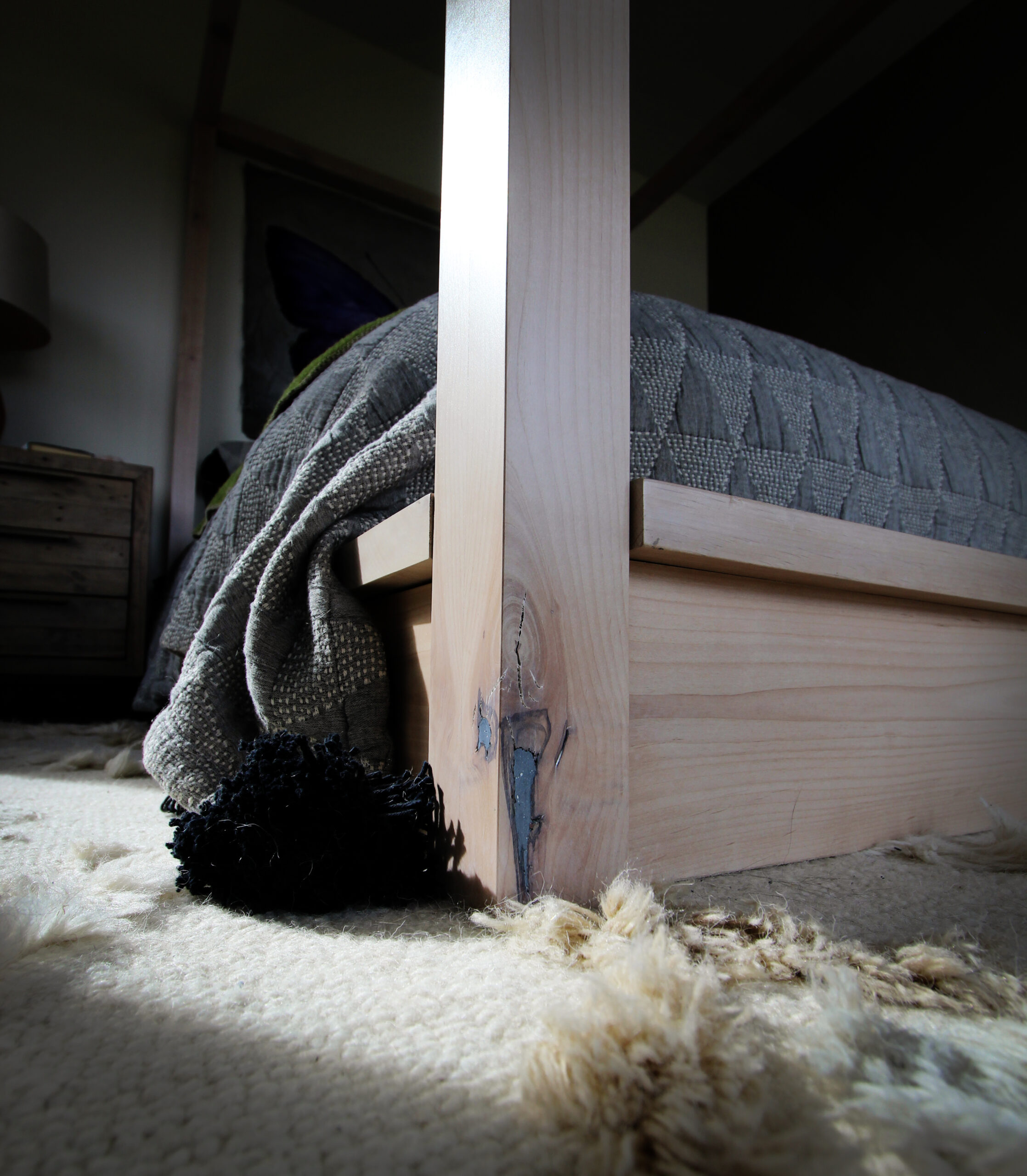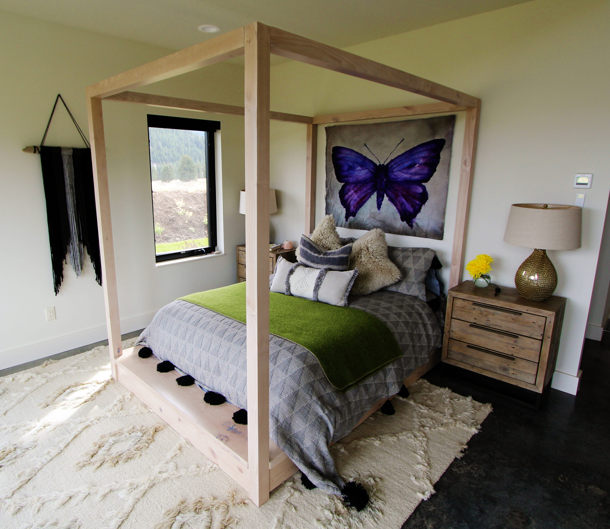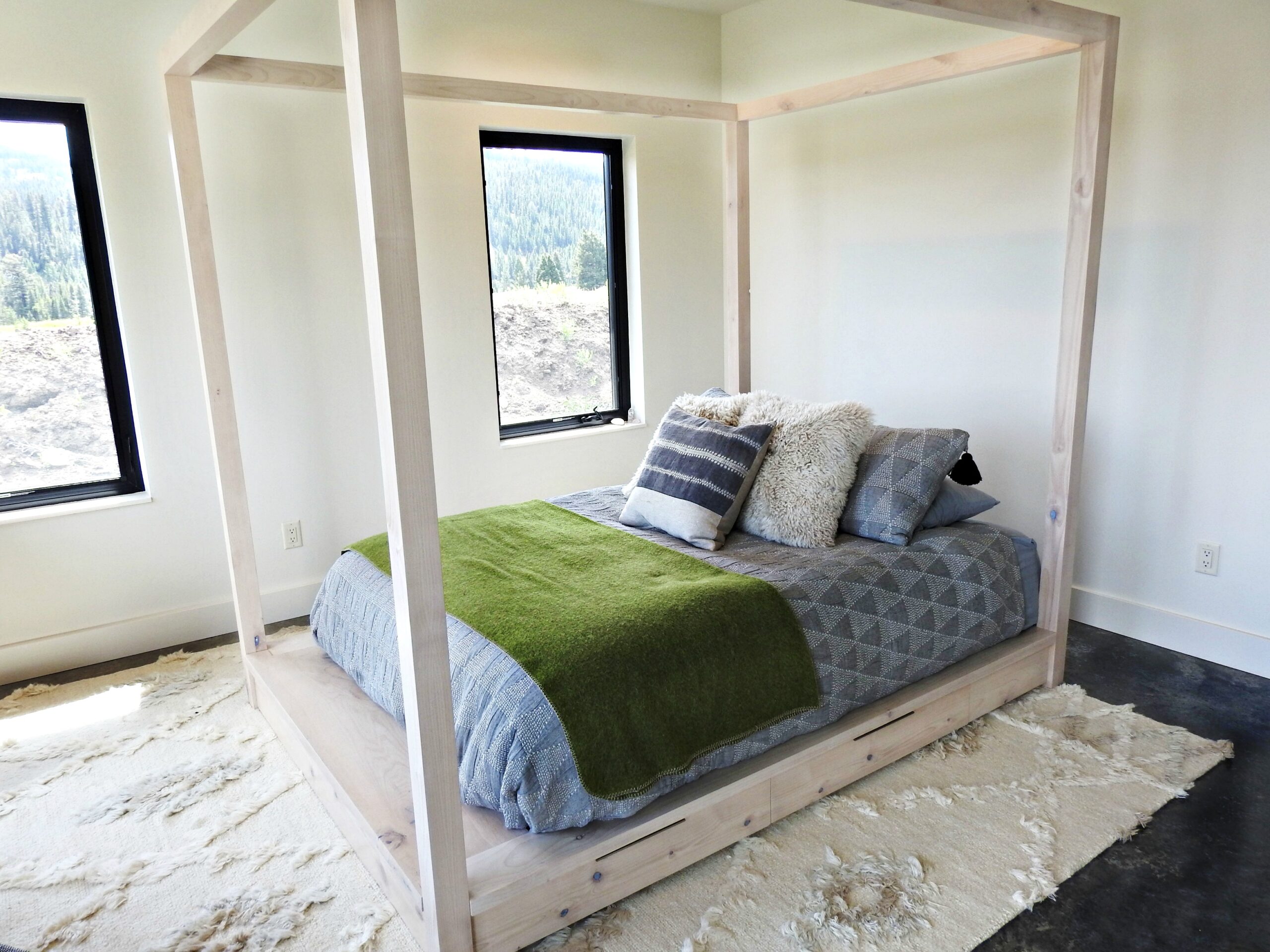 A classy modern example of a unique design. Looking as if straight out of a novella the modern alder canopy bed with drawers is a bed you will love to fall into every night. This stunning canopy bed is crafted out of alder, with reinforced new wood for durability. Pictured in a simple white stain with under drawers for organized storage. Pre-catalyzed lacquer finish coats the bed, further ensuring structural durability while lending the source wood a brilliant shine. An unforgettable mix of regal, and modern simplicity. We, at Four Corner Furniture, emphasize on attention to detail and handcraft each bed to order. Which makes every modern alder canopy bed with drawers a one of a kind experience.