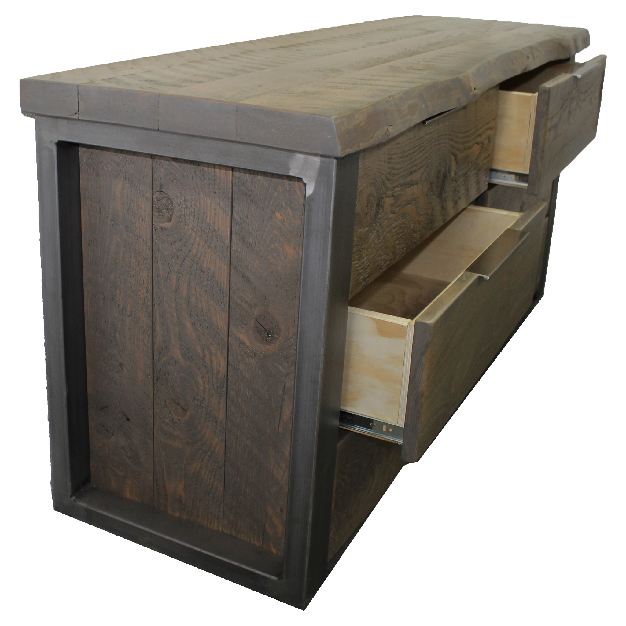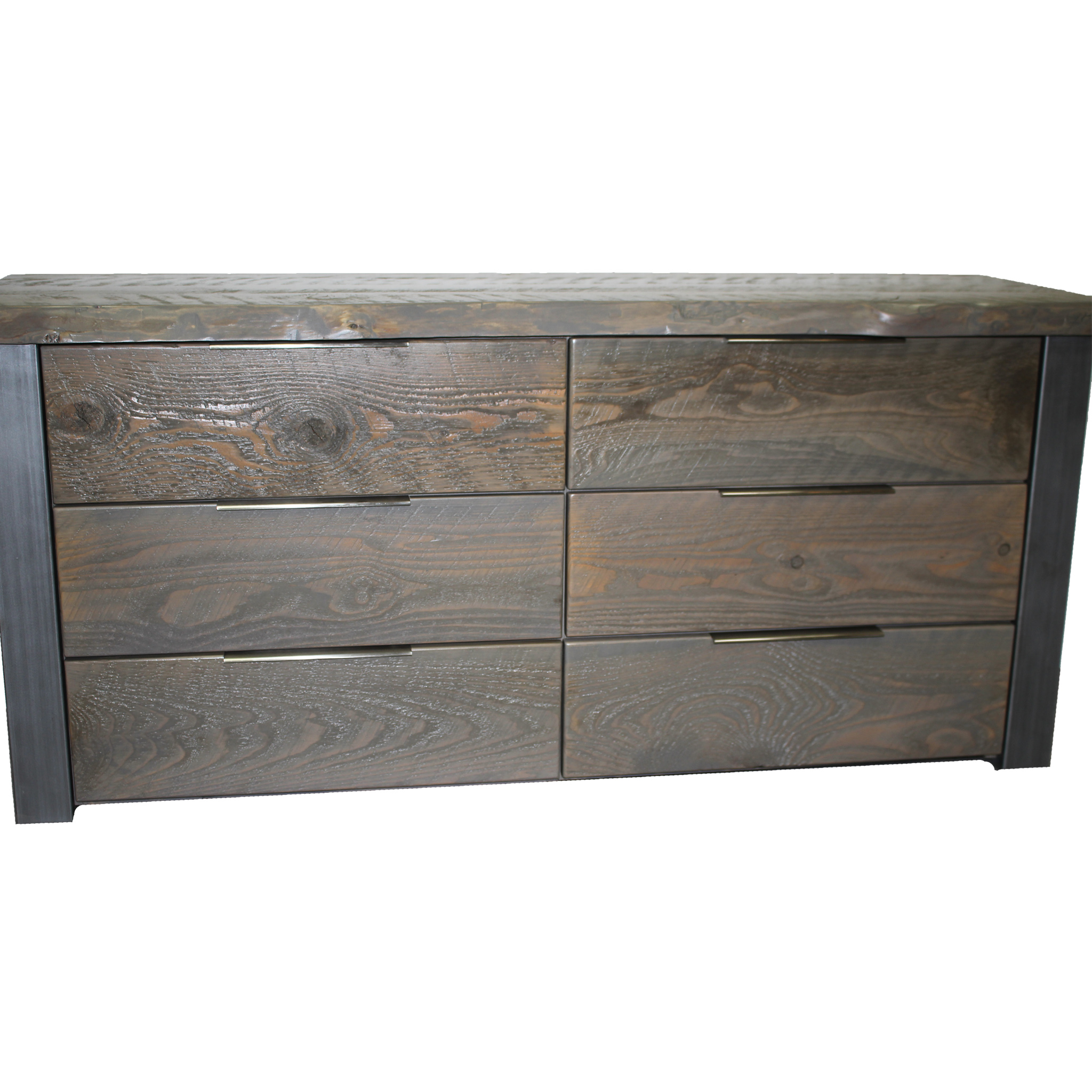 At Four Corner Furniture, we take great pride in the high quality, handcrafted furniture we produce, and our modern metal live edge dresser is no exception. This dresser is made from beautiful circle sawn fir that’s reinforced with new wood, as needed, to ensure it can stay with your family for years into the future. Durability is strengthened with a coat of pre-catalyzed lacquer finish, which also helps highlight the wood’s brilliant inner shine. The exterior of the dresser features hand welded steel sides that help support a live edge slab top. A satin nickel modern Edgefield pull adorns the face of each drawer, which are each set atop full extension ball bearing glides for easy opening and closing. American designed and manufactured, every modern metal live edge dresser will ship from Bozeman, Montana.