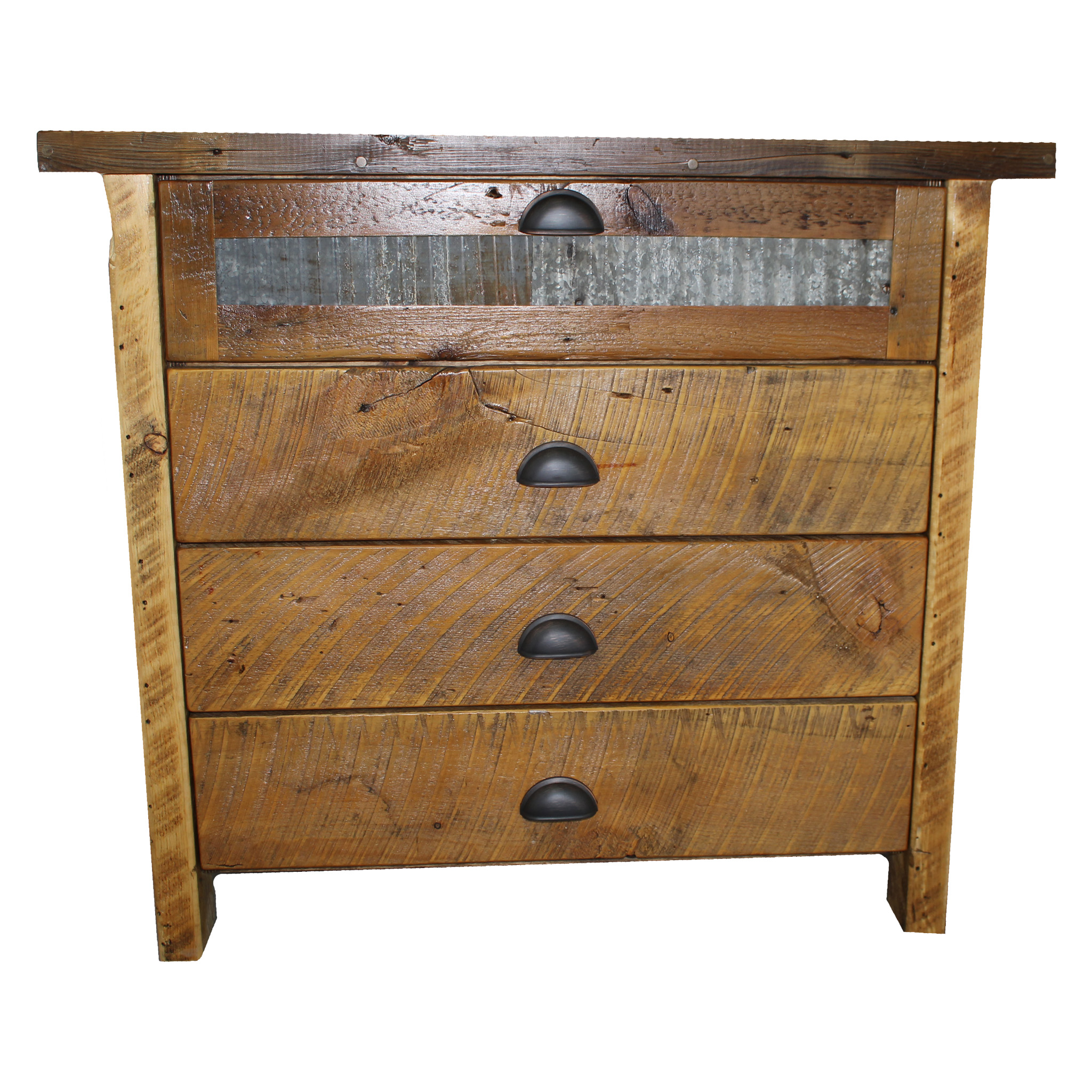 At first glance, it would be easy to confuse this reclaimed chest of drawers for an antique pulled from some rural ghost town or abandoned forest cabin. In reality, the piece is quite new, but it was crafted by the talented furniture makers of Four Corner Furniture in Bozeman, Montana who used only reclaimed barnwood to turn a pile of salvaged scrap into an heirloom quality piece of furniture you’ll be glad to display. This reclaimed chest of drawers features five full length drawers with metal drawer pulls, and a beautifully finished top surface perfect for showing off your favorite family photos.