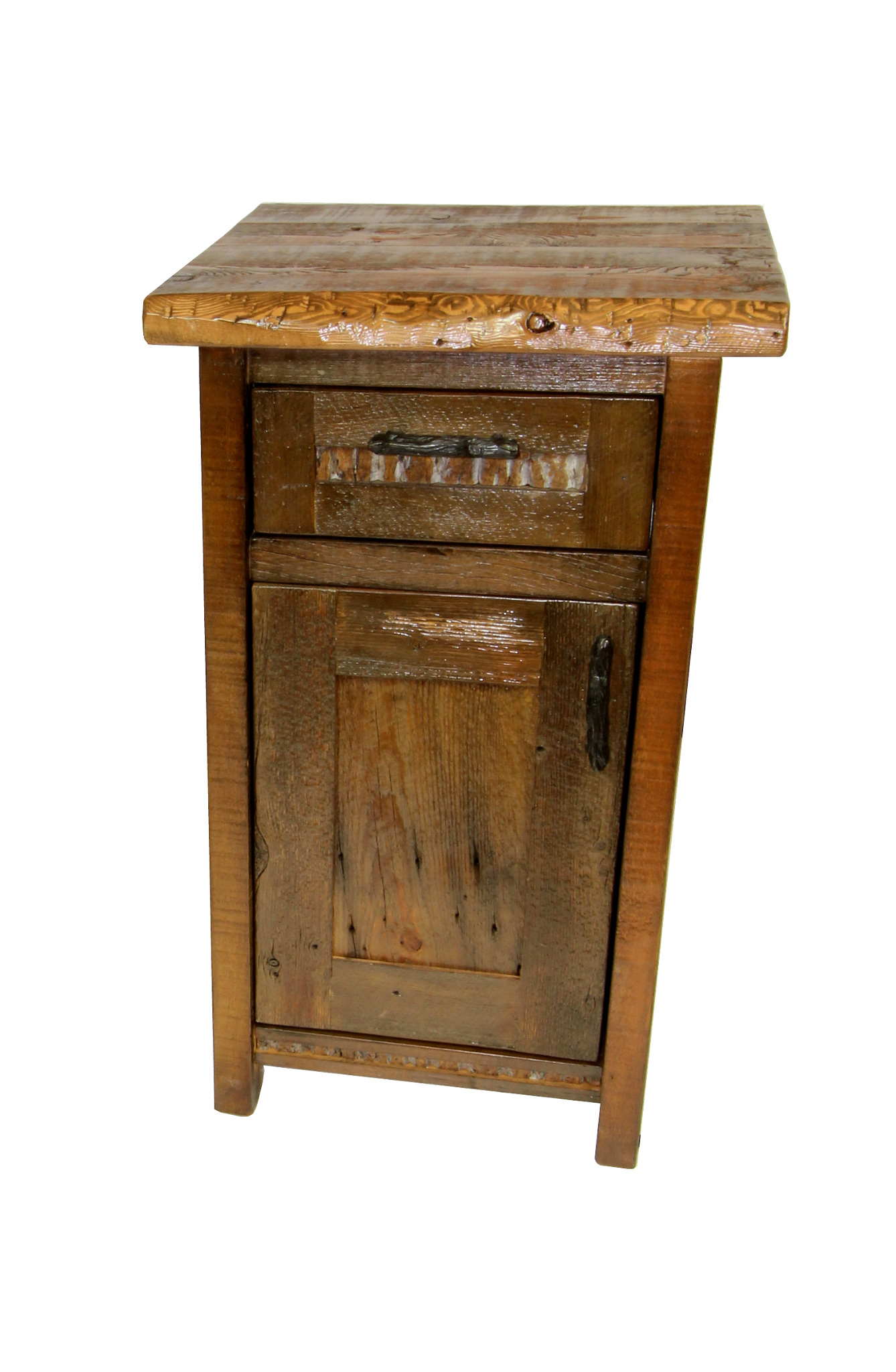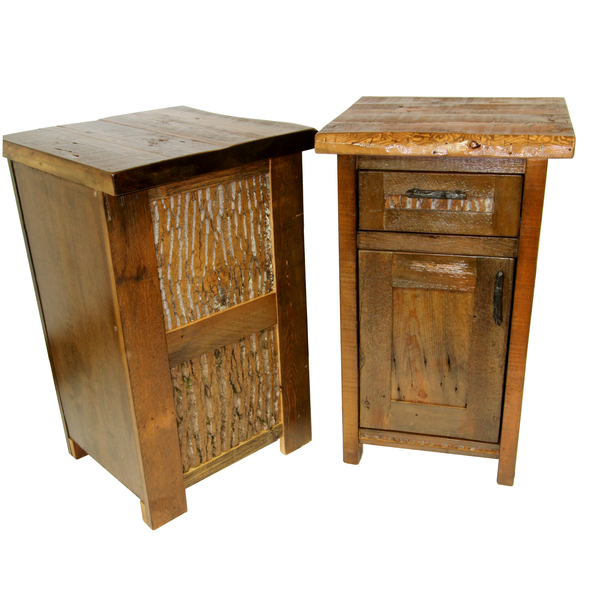 Add depth and dimension to your bedroom with our refined rustic cabinet nightstand. The perfect way to accent your bedroom in quaint, rural style, this nightstand is constructed out of true reclaimed American barnwood and reinforced with new wood. Only as needed, to ensure you get as much life out of the furniture as possible. The surface of each nightstand, along with the ample storage space provided by the slide out drawer and pull open lower cabinet, will allow you have plenty of room for your bedside staples. Authentic tree bark accents the visible surface of each nightstand for an extra pop of unique rustic aesthetic. The refined nightstand pre-catalyzed lacquer finish is added for beauty and extra durability. Manufactured right here in the USA by Four Corner Furniture, each refined rustic cabinet nightstand that we sell ships direct from our shop in Bozeman, Montana.