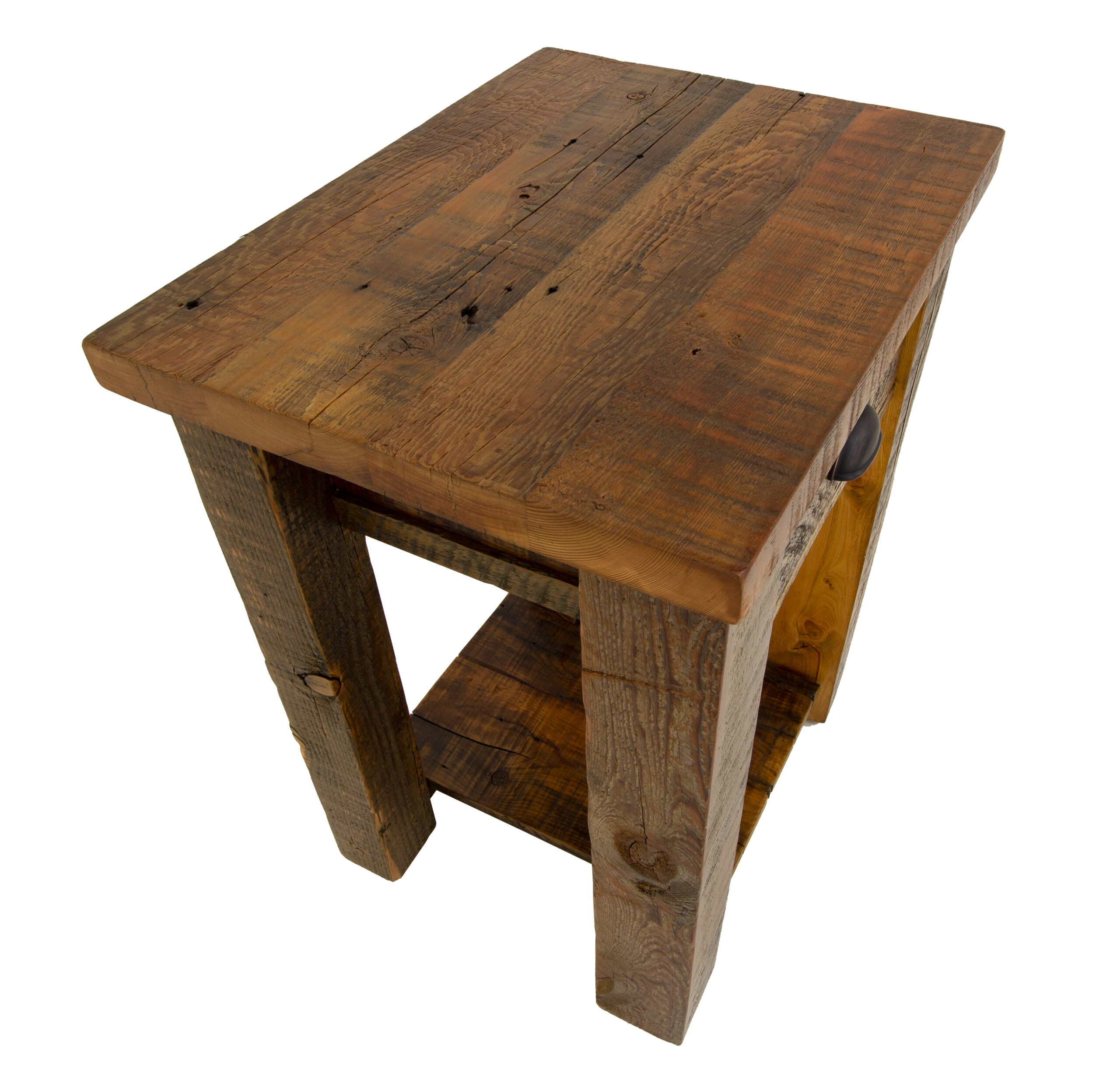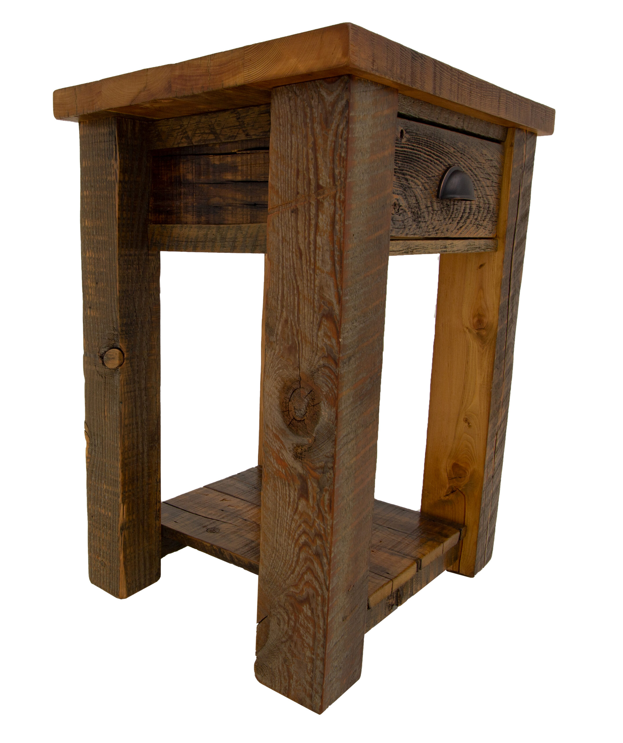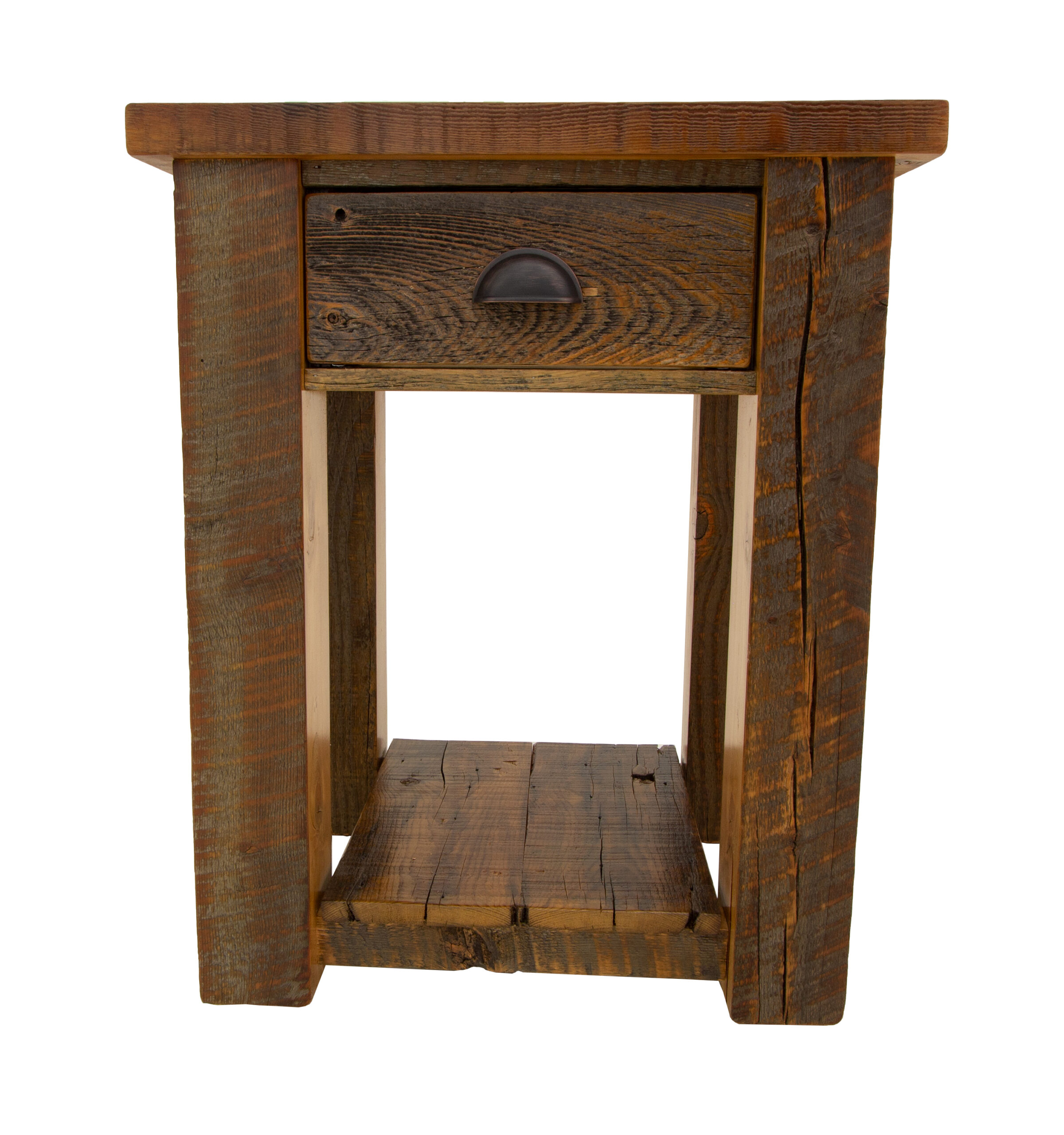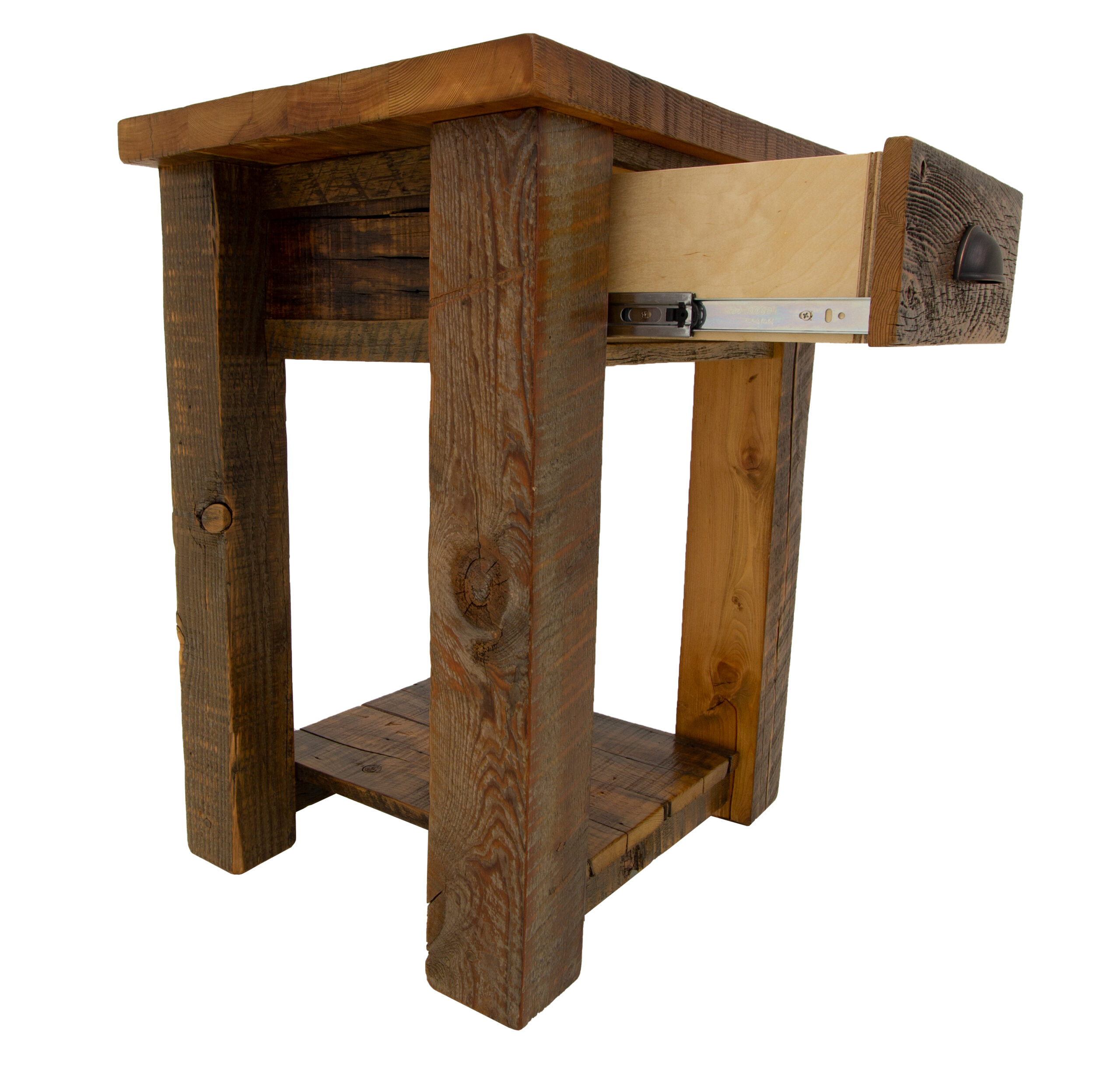 Handmade by our very own experienced craftsmen out of true American barnwood at Four Corner Furniture, this barnwood nightstand is a true work of art. Reinforced with new wood as needed to ensure durability throughout the years. A beautifully simplistic design, with clean lines. This piece features a spacious top surface, slide out drawer, and lower storage deck perfect for books and magazines. Lightly treated as not to obscure the beauty of the wood grain, this nightstand is simply a visual pleasure. Designed and manufactured to order right here in the USA – Bozeman, Montana. With the barnwood nightstand you can put it in practically any bedroom and will go with the natural flow of the design you have chosen.
