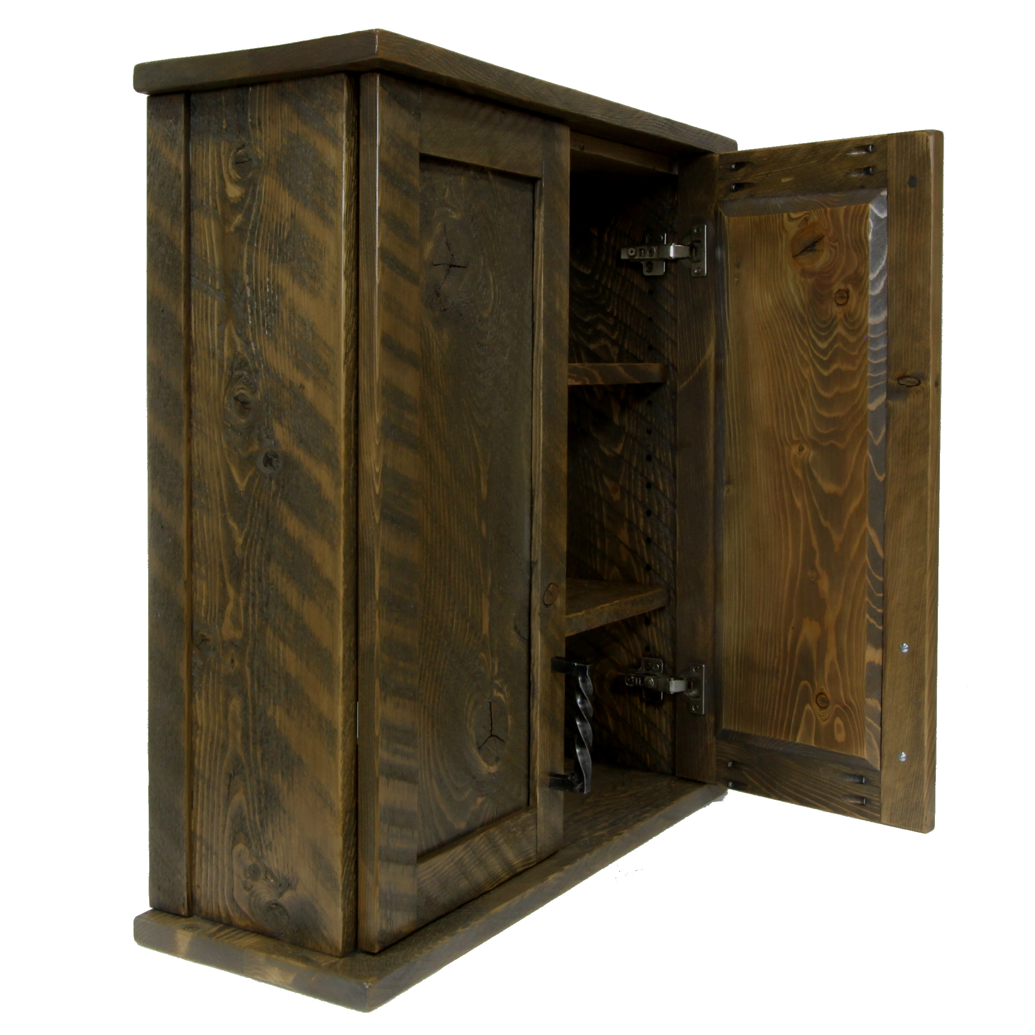 Built with fine craftsmanship and made to order by the builders of Four Corner Furniture, this rustic bathroom storage would look lovely on your bathroom wall. Made almost entirely from circle sawn fir, and reinforced with new wood for durability, this piece is true American rustic. A pre-catalyzed lacquer finish further promotes durability and adds a subtle shine to the natural beauty of the source wood. In addition to the beautiful aesthetic that this piece invites, it also features adjustable interior shelf storage, heavy duty soft close hinges, and oil rubbed bronze handles. The included heavy duty Z-bar wall mount hardware makes it easy to hang this cabinet practically anywhere. Like all furniture we build, our rustic bathroom storage is American designed and manufactured and your order will ship direct from our shop in Bozeman, Montana.