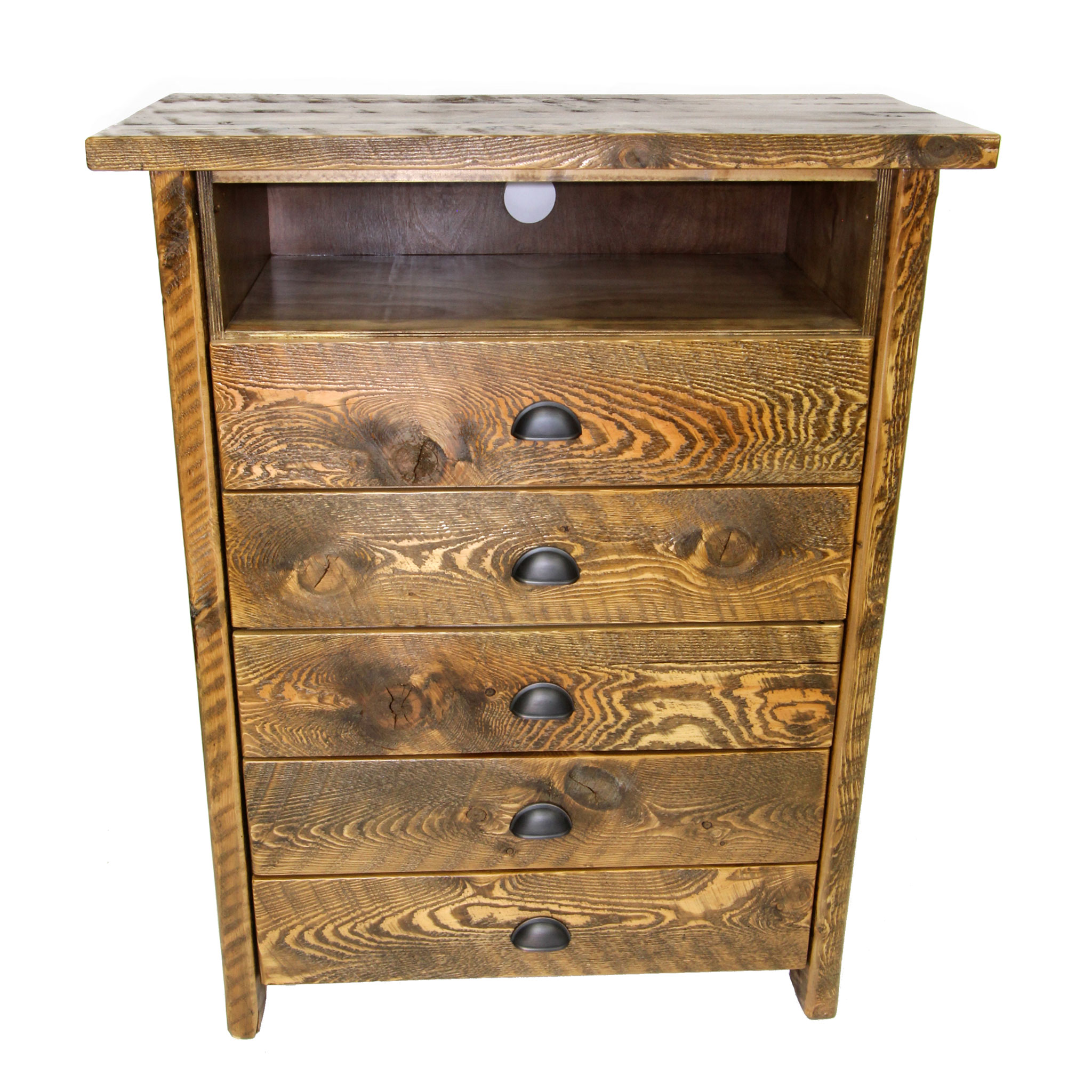 If you love the eye catching look of handmade wood furniture, you’ll want to take a look at the rustic media chest from Four Corner Furniture in Bozeman, Montana. A major point of focus in many common areas, you want the foundation of your media center to be strong and sturdy but also easy on the eyes – and our media chest accomplishes both. Constructed to order, this chest is a single media shelf chest made primarily from circle sawn fir and reinforced with new wood as needed. There’s cord hole access in back to keep unsightly wires out of view. It has adjustable leg levelers so you can put this media chest on any surface, from carpet to tile. Our rustic media chest also features full extension ball bearing glides on the drawers, oil rubbed bronze handles, and a pre-catalyzed lacquer finish for added beauty and durability.