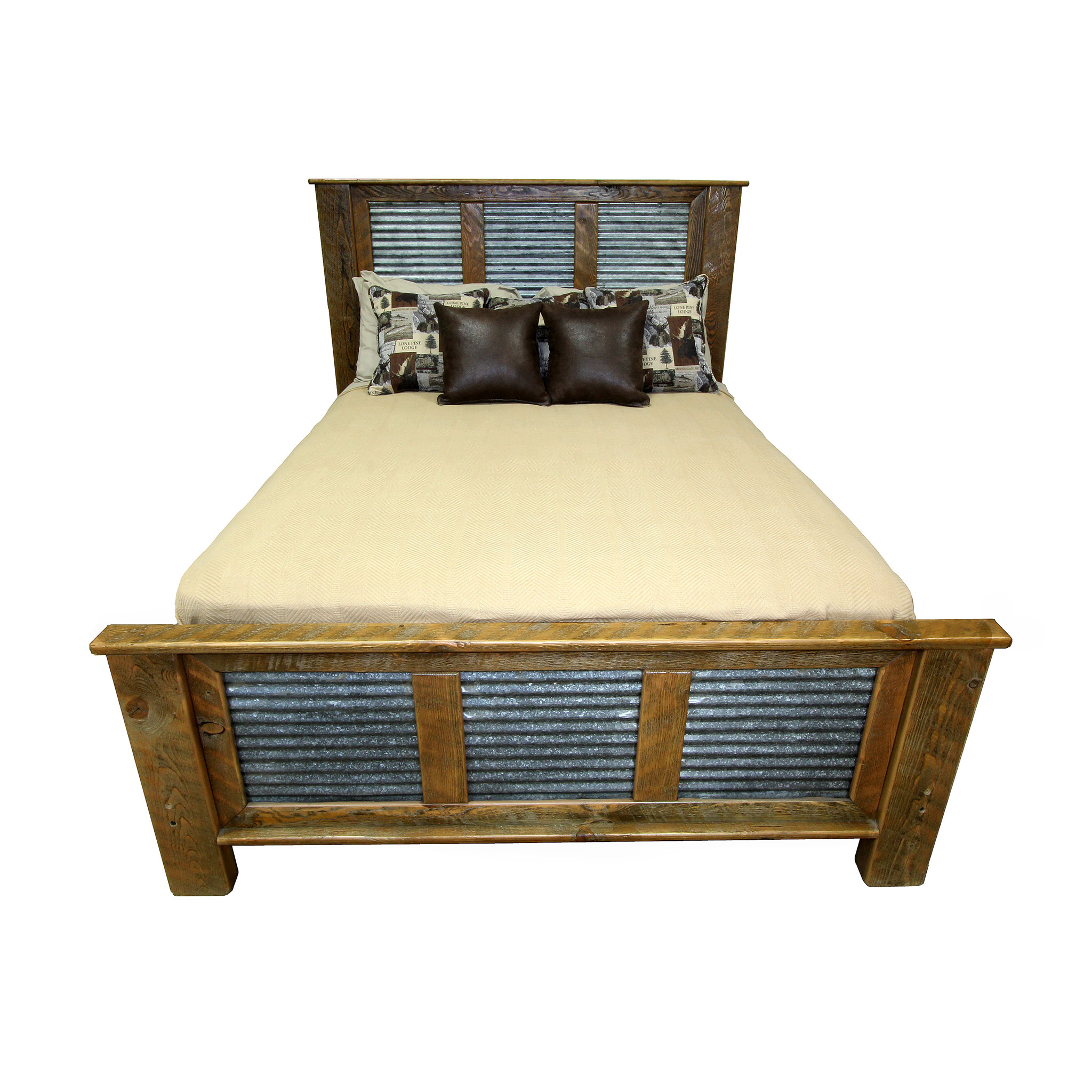 When you buy a bed from Four Corner Furniture – a bed like our rustic modern metal panel bed – you can be sure you’re buying a one of a kind piece of furniture made with care and made to last. Our furniture craftsmen take the time to construct every bed to order, by hand. Thanks to the uniquely beautiful patterns of the circle sawn fir that we make this bed out of, no two beds that ship from our shop in Bozeman, Montana are ever exactly alike. Durability is ensured with the help of new wood where appropriate and with the application of a pre-catalyzed lacquer finish. Panels of tin corrugated metal add visual depth to this design and complete the overall look of this rustic modern metal panel bed.