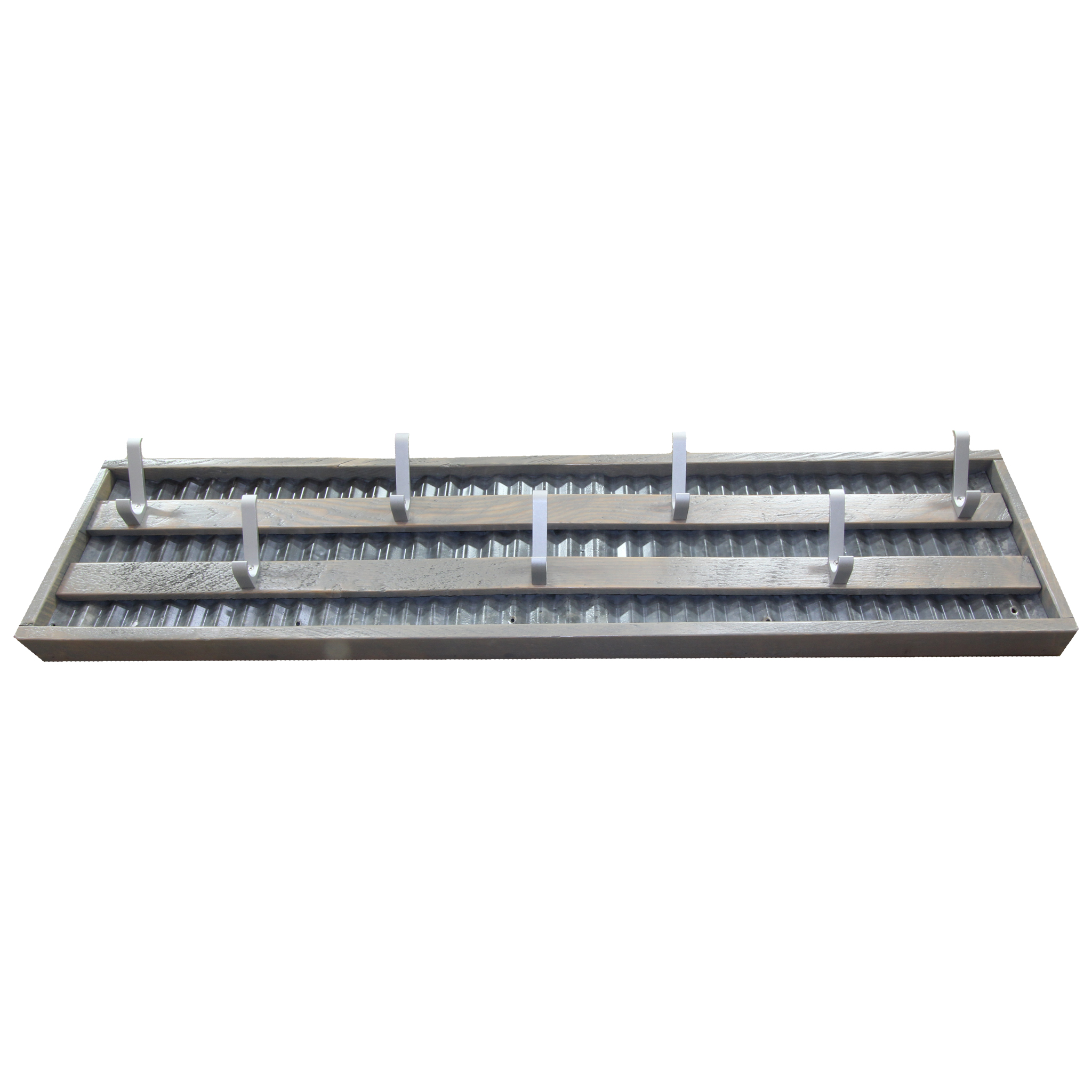 A coat rack that defines edgy rustic decor, our rustic wood and metal coat rack is an absolute beauty. Just the right amount of sanding, a beautiful wood stain, and a pre-catalyzed lacquer finish to maintain beauty and durability for years. Every rustic wood and metal coat rack that we produce is 100% original and unlike any other. With a beautiful silver tin inlay, giving depth and dimension to the rustic metal coat rack. Manufactured and designed in Bozeman, Montana by the talented craftsmen of Four Corner Furniture. The rustic wood and metal coat rack is sure to capture the gaze of anyone who walks past. The hooks are a satin aluminum adding a modern zest to this rustic style.