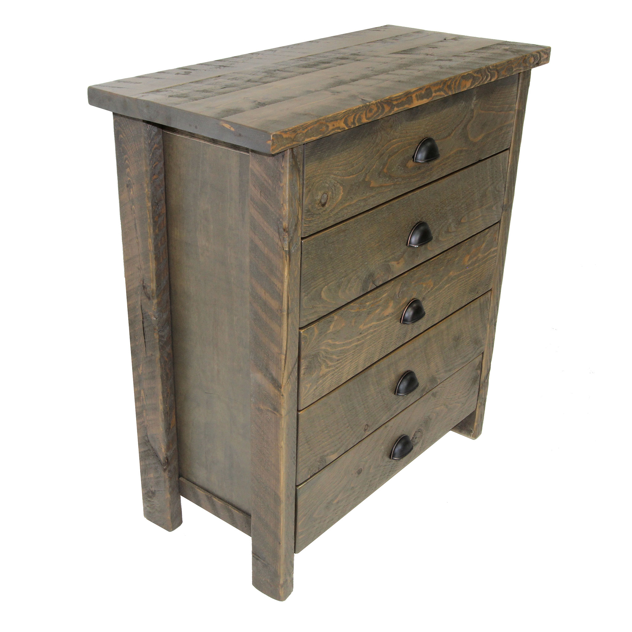 Your bedroom furniture says a lot about your personality and design style, and we think you’re going to love what our rustic wood chest of drawers has to say about you. Quaint and rustic, beautiful and practical, this chest is truly everything you’re looking for in a piece of furniture. The wood itself is primarily circle sawn fir with some new wood to promote strength and durability. A pre-catalyzed lacquer finish adds to durability and helps bring out the natural brilliance of the wood’s grain. Designed and manufactured in the USA, this piece also features full extension ball bearing glides on each sliding drawer. This chest of drawers has oil rubbed bronze handles for depth of design, and adjustable leg levelers for comfortable placement on various types of flooring. Each rustic wood chest of drawers that we build is made by hand to order and ships direct from our shop in Bozeman, +Montana.