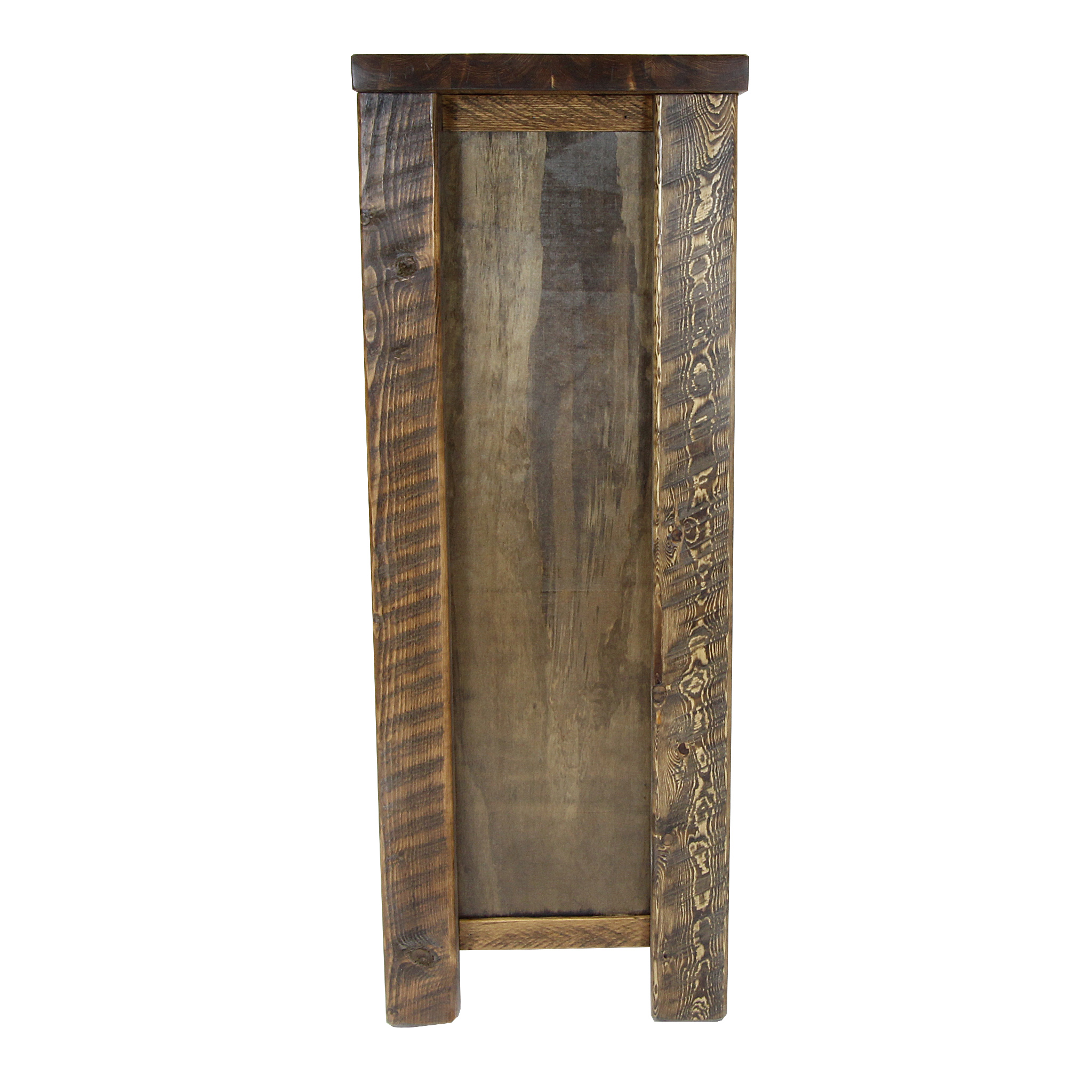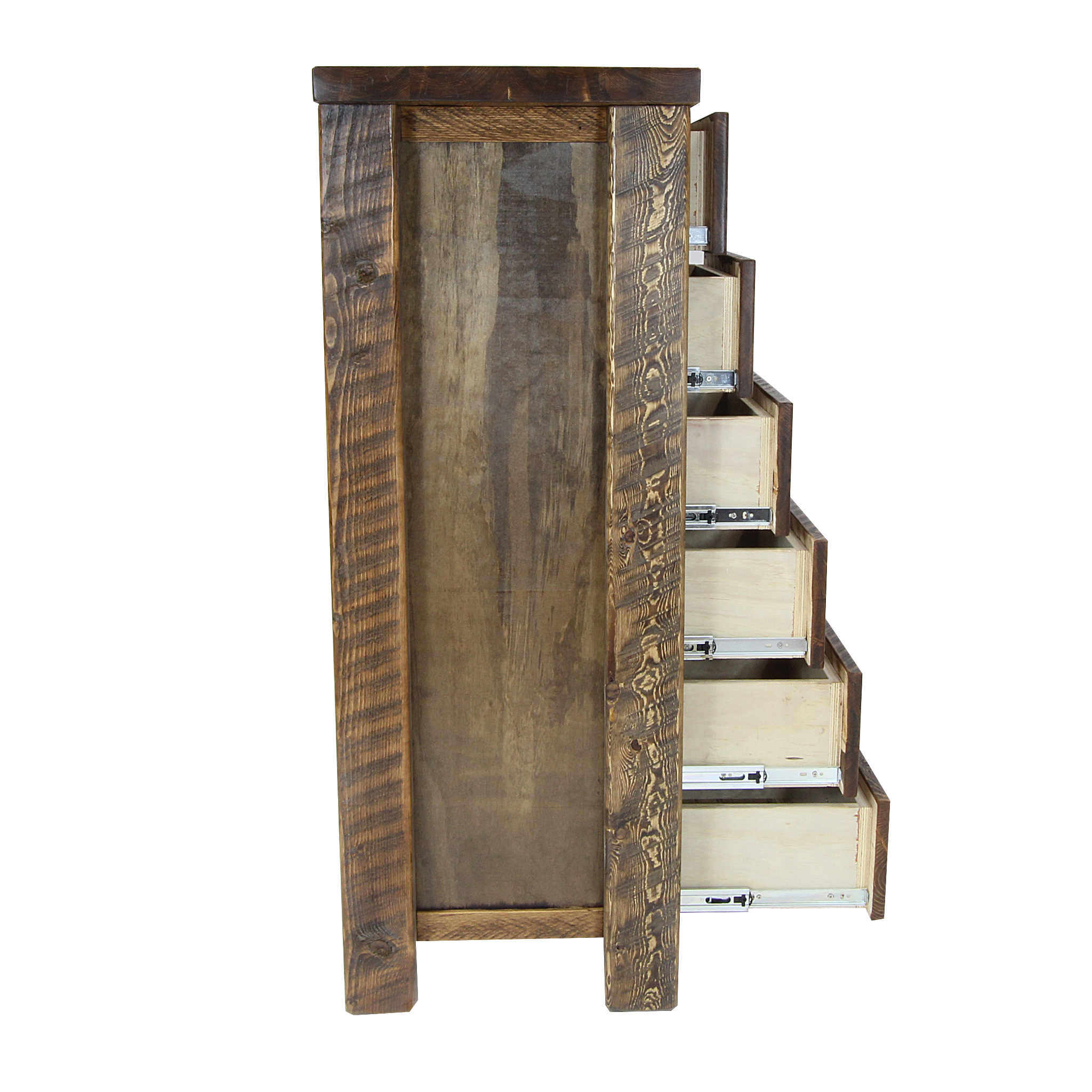 Reflect your personal style or inject some rustic charm into your bedroom with the rustic wood lingerie chest from Four Corner Furniture. Like all the furniture we produce, this piece is handcrafted to order by expert craftsmen working from our shop in Bozeman, Montana. It features adjustable leg levelers, so you can place this chest on any surface, as well as full extension ball bearing glides for easy opening and closing. The handles are oil rubbed bronze and all the wood is coated in a pre-catalyzed lacquer finish for both beauty and durability. Crafted out of circle sawn fir and new wood for structural strength. Our rustic wood lingerie chest is a far cry from anything sold by our big box competitors.