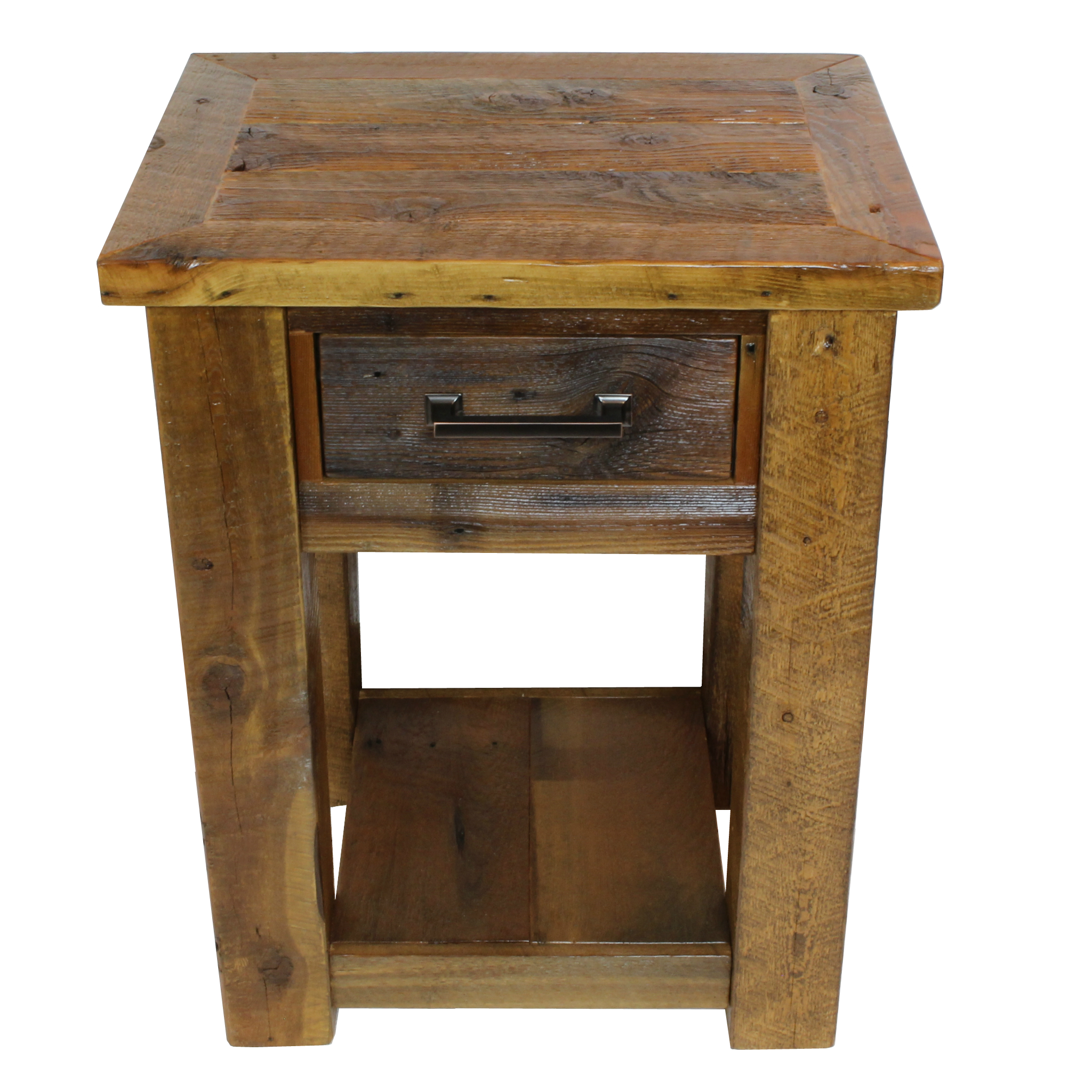 Crafted by hand out of true American barnwood by the team at Four Corner Furniture, this rustic wood lodge nightstand is a true work of functional art. Reinforced with new wood as needed to ensure durability throughout the years. This piece features a spacious top surface, slide out drawer, and lower storage deck perfect for books and magazines. Lightly treated as not to obscure the beauty of the wood grain, this nightstand is simply a visual pleasure. Designed and manufactured to order right here in the USA – Bozeman, Montana. The rustic wood lodge nightstand has everything going for it, and you’re going to love the way it looks next to your bed.