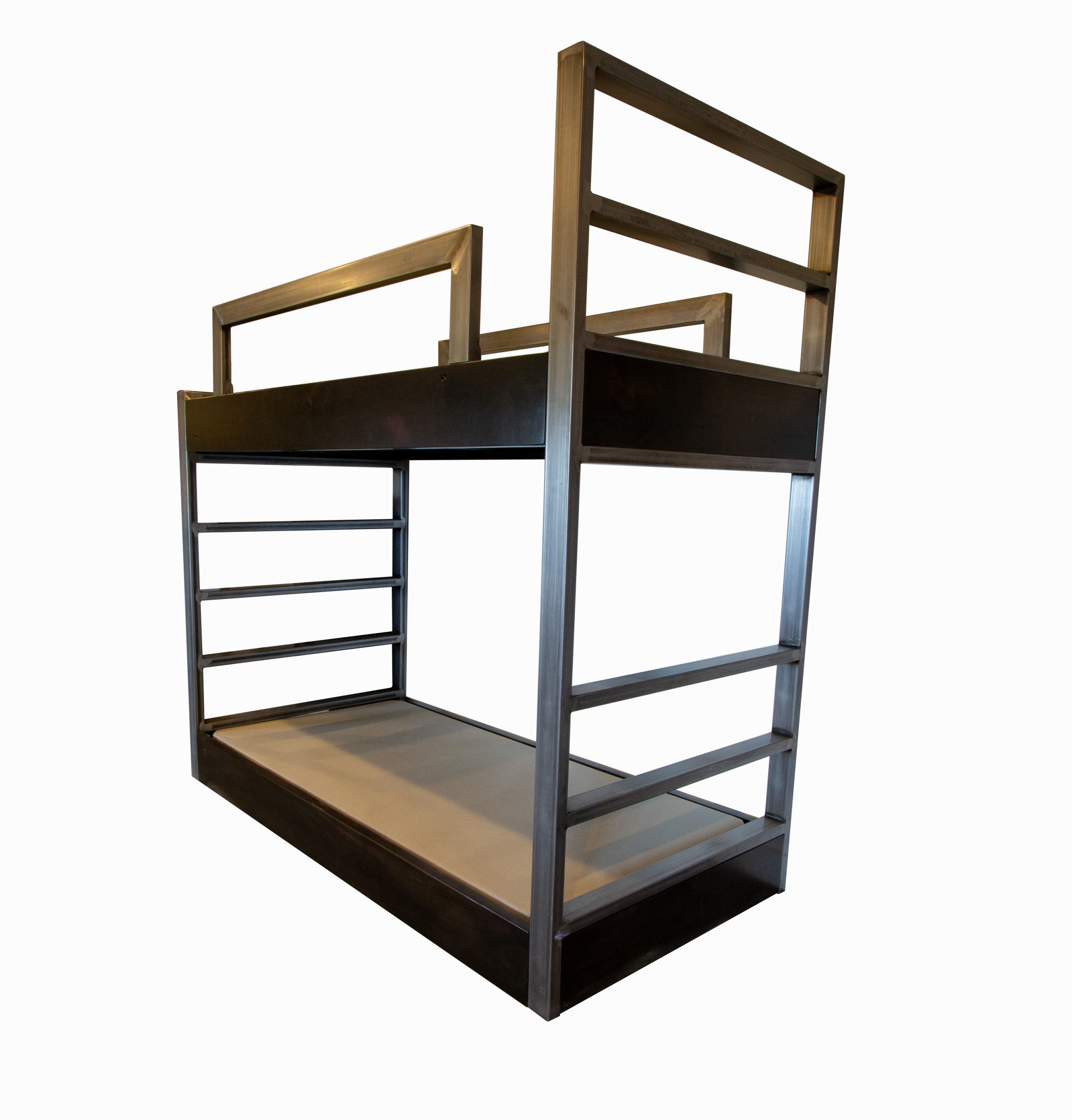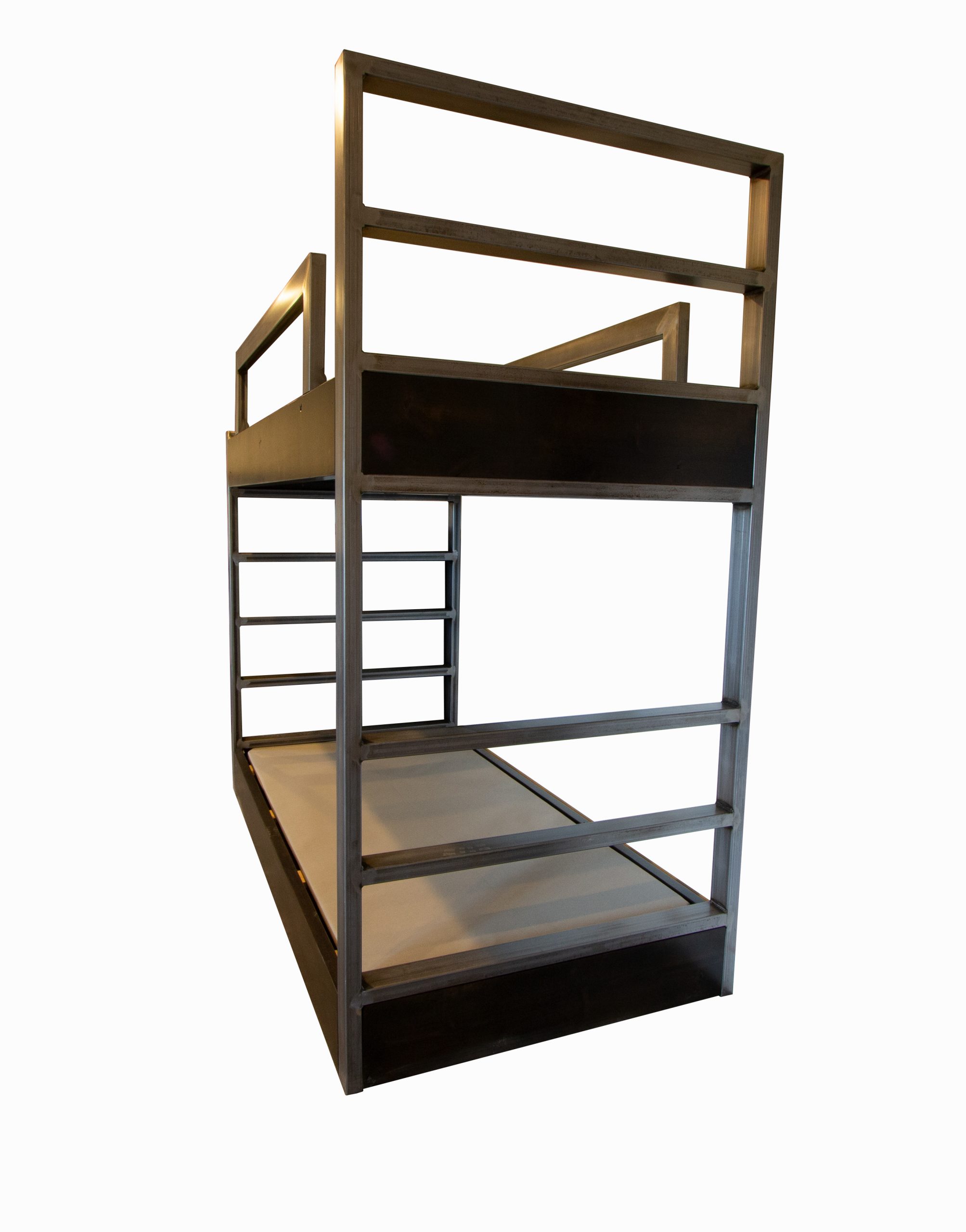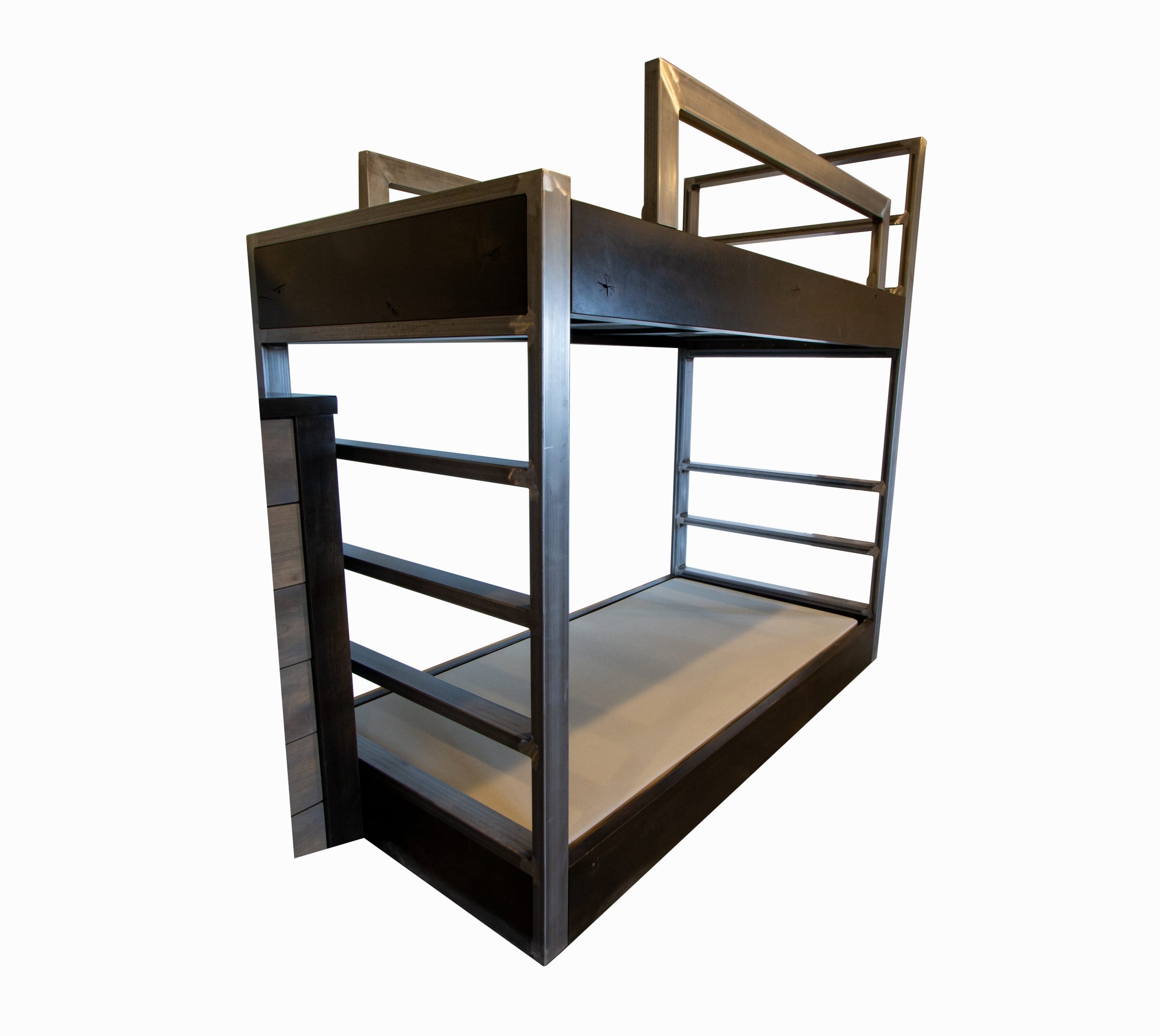 - Features Hand Welded Steel Bed Frame With A Built In Ladder @ Footboard